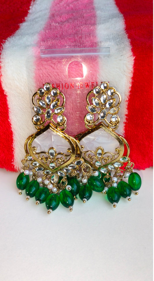 Elegant Green Colored Pearl Jhumki Earrings for Women & Girls – Traditional Oxidized Silver Ethnic Jewelry
