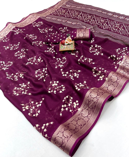 Embracing Rani Pink Colored Soft Lichi Silk Saree with Heavy Jacquard Work & Rich Border