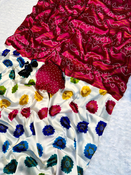 Premium Gajji Silk Red & White Colored Saree – Semi Gajji Heavy Weave with Blouse