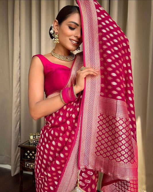 Embracing Rani Pink Colored Soft Lichi Silk Saree with Heavy Jacquard Work & Rich Border