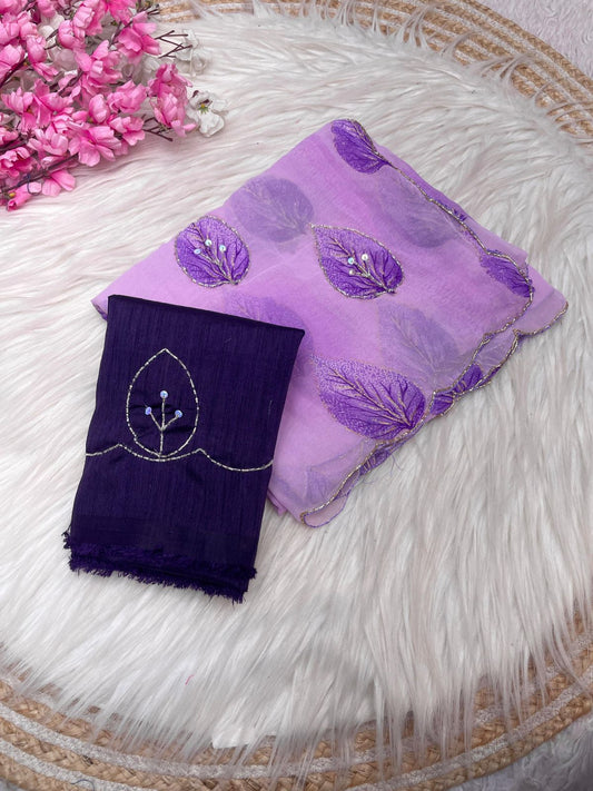 Bollywood Style Wetless Jari Print Purple Colored Saree with Khatli Handwork & Mono Banglori Blouse