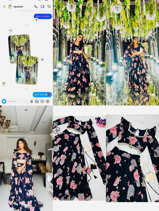 Exclusive Navy Blue Colored Kalamkari Printed Georgette Lehenga Choli with Designer Lace Blouse – Ready to Wear