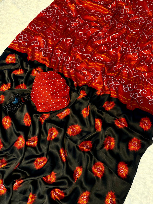 Premium Gajji Silk Black & Red Colored Saree – Semi Gajji Heavy Weave with Blouse