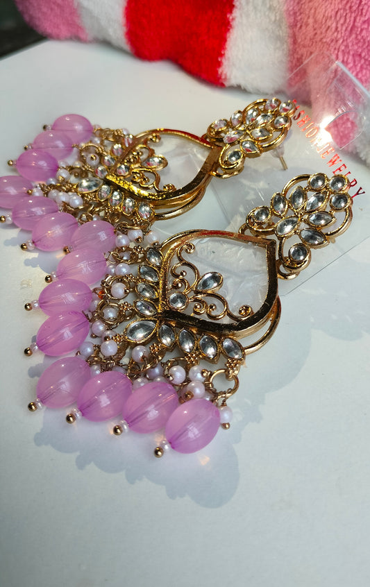 Premium Light Pink Colored Pearl Drop Jhumki Earrings