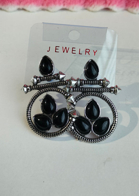 Elegant Black Colored Pearl Jhumki Earrings for Women & Girls – Traditional Oxidized Silver Ethnic Jewelry