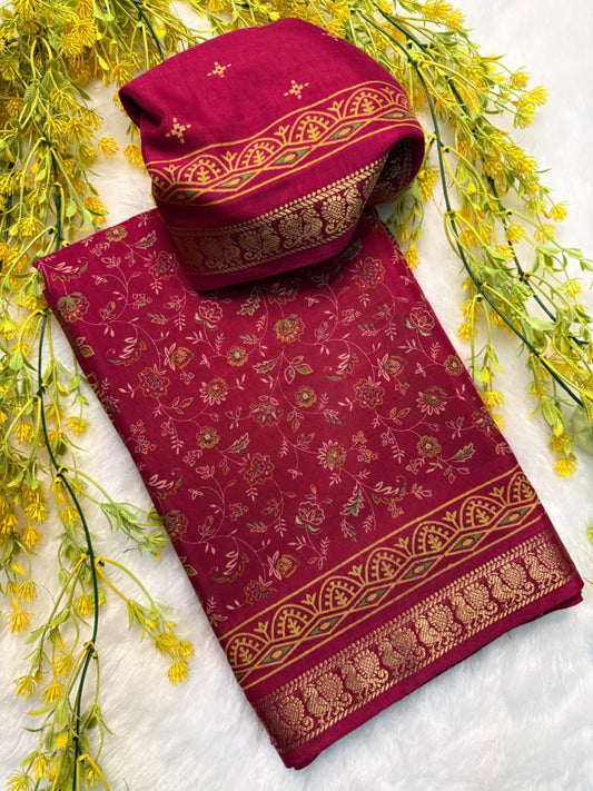 Premium Marron Dolla Silk Gala Saree with Rich Zari Pallu, Woven Border & Tassels