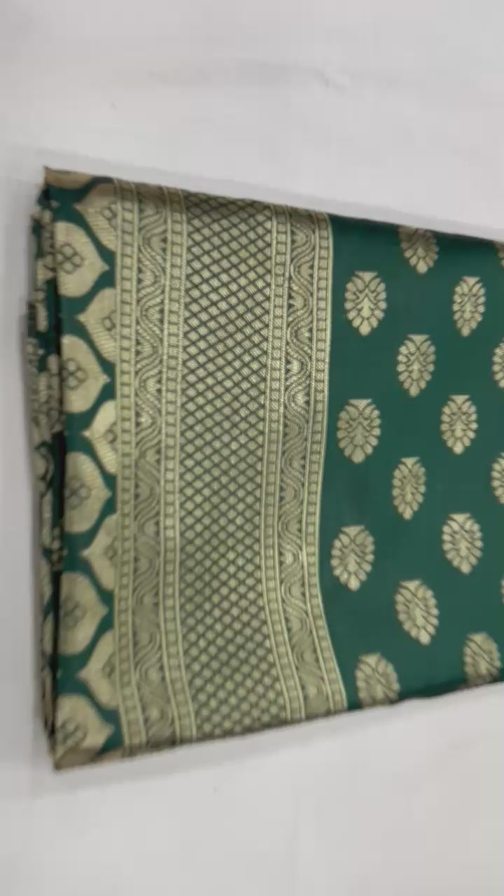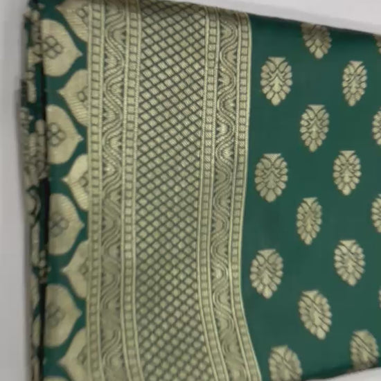 Embracing Dark Green Colored Soft Lichi Silk Saree with Heavy Jacquard Work & Rich Border