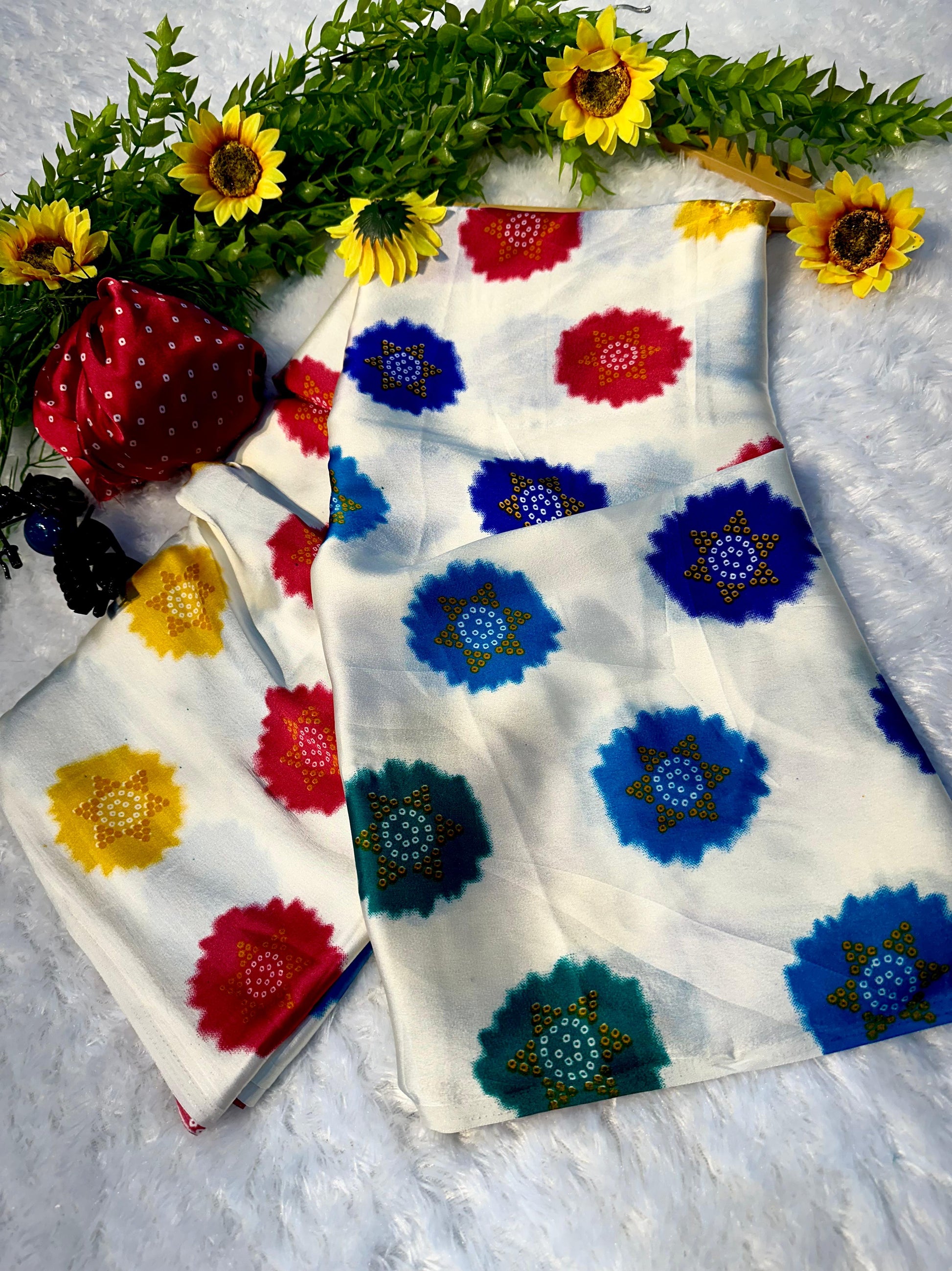 Each saree comes with a matching blouse piece and optional four latkans (₹20 extra) to enhance the ethnic charm. With its 44-inch width and 6.30 meter length, it offers a rich, full drape that makes every occasion special.