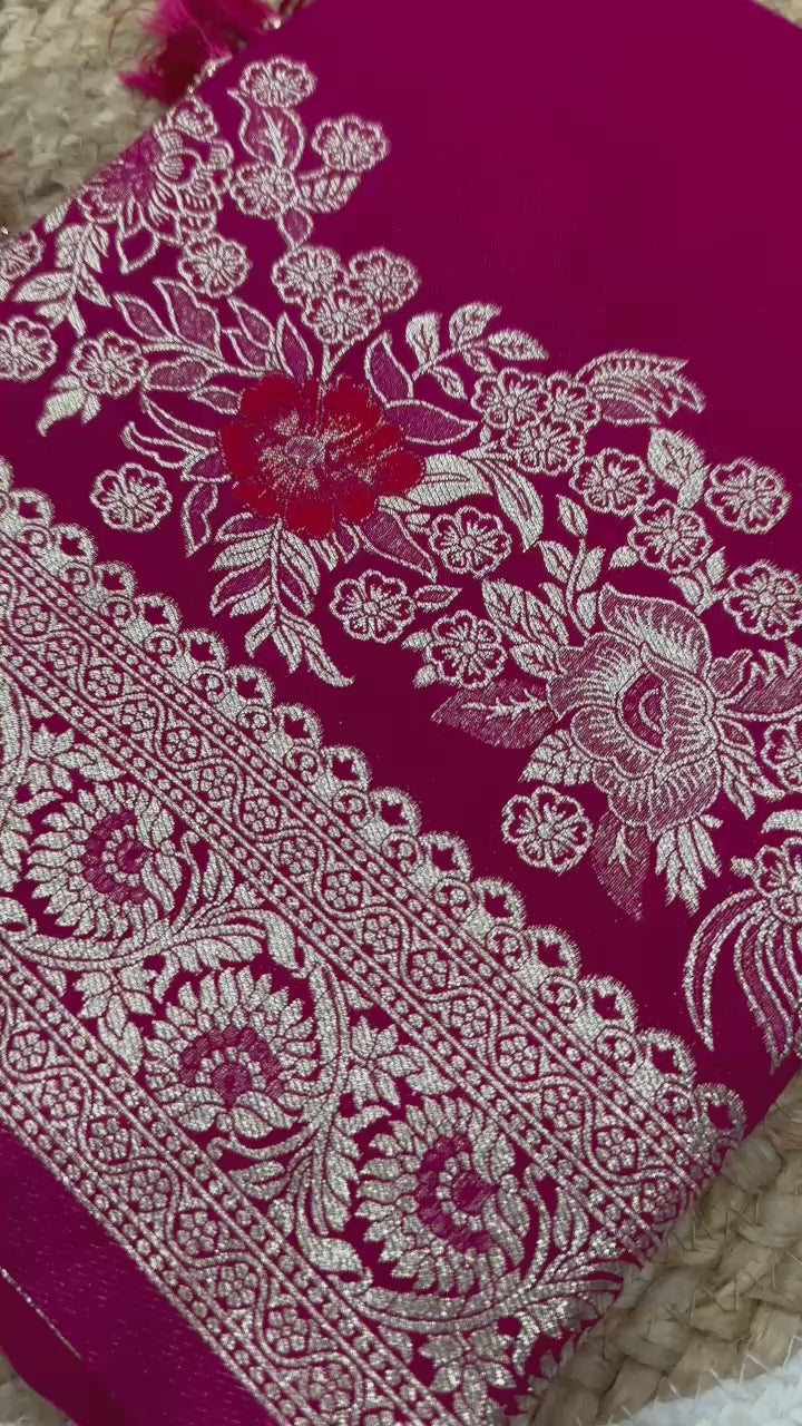 Paired with a matching silk weaving blouse piece featuring a stylish sleeve border, this saree is perfect for weddings, festive occasions, family functions, and traditional celebrations. Available in 7 stunning color options, each piece reflects premium craftsmanship and superior quality.