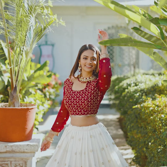 Premium Red & White Georgette Sequins Embroidered Lehenga Set with Dupatta