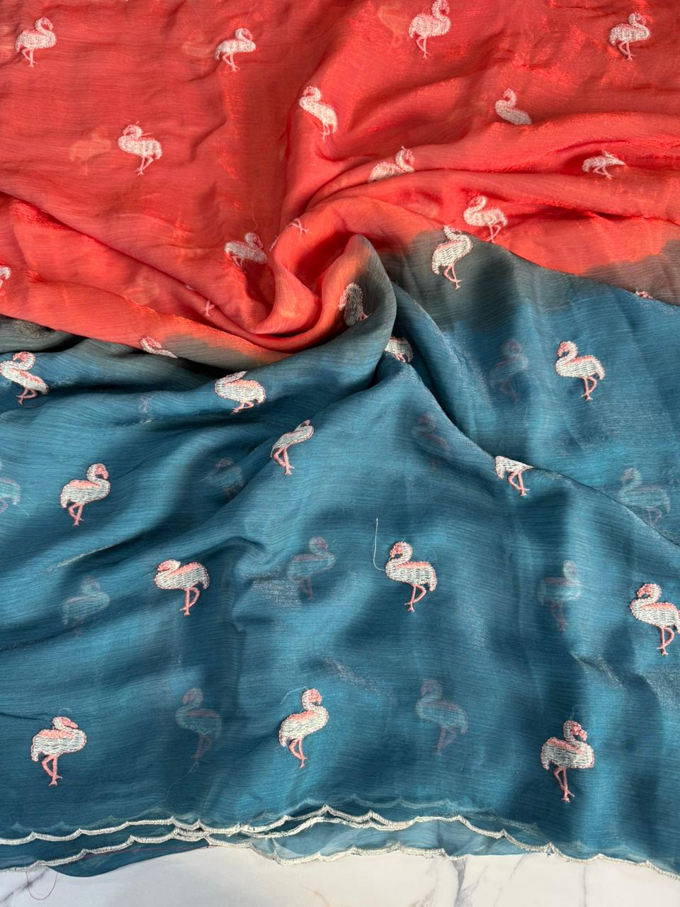 This saree features a beautiful dual-shaded tone that creates a graceful visual flow, enhanced with all-over duck figure butti motifs woven delicately across the fabric. Crafted in soft Zemichu fabric, the saree offers a smooth texture, lightweight feel, and effortless drape — perfect for day functions, festive gatherings, pooja wear, and elegant casual occasions.